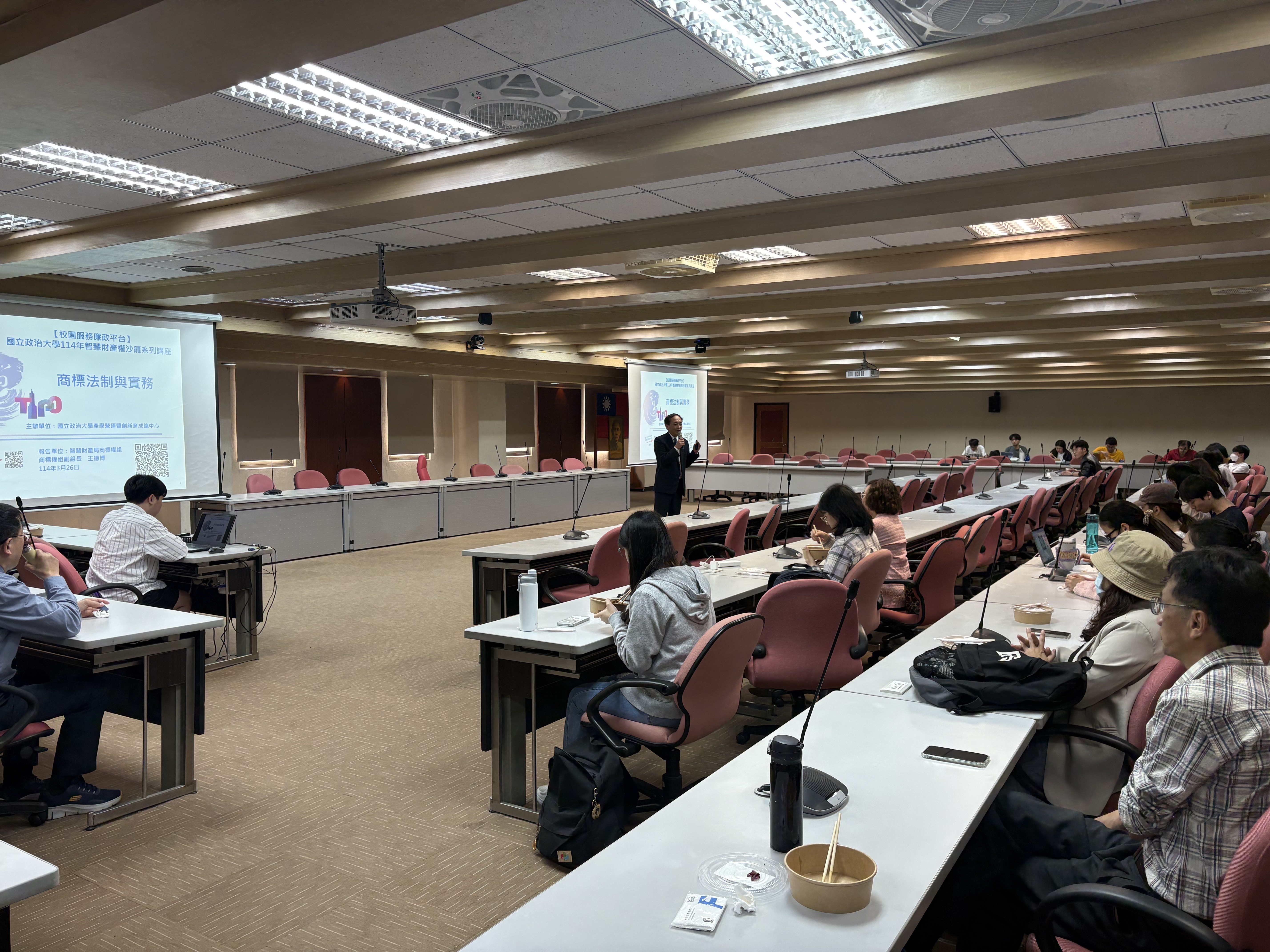 本校產學營運暨創新育成總中心(下簡稱產創總中心)於本(114)年度攜手經濟部智慧財產局共同舉辦本年度四場智慧財產權沙龍系列講座。該系列活動第一場次邀請經濟部智慧財產局商標權組王德博副組長以「商標法制與實務」為題,帶領本校教職員生從何謂商標出發,深入淺出地介紹如何檢索及申請註冊商標,最後再提商標如何授權及發現仿冒該如何處理等議題,另藉此倡導校園誠信並推動校園服務廉政平臺。